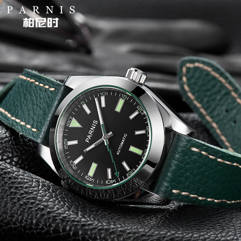 Parnis Watch Men 40mm Mechanical Sapphire Crystal Casual Leather Luminous Waterproof Men s Automatic Watch Very well made.
