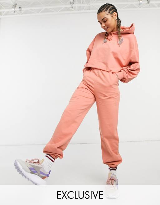 COLLUSION oversized embroidered joggers in peach co ord Very well made.