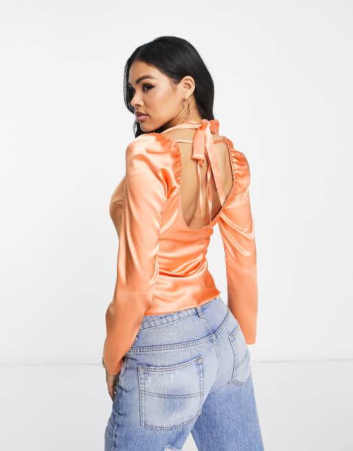 ASOS DESIGN twist front satin blouse with halter neck in peach Very well made.