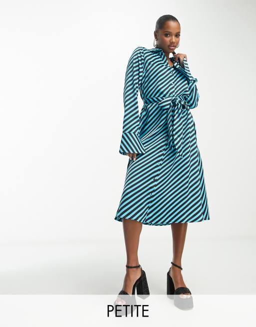 Y.A.S Petite satin maxi shirt dress with tie belt in blue diagonal Very well made.