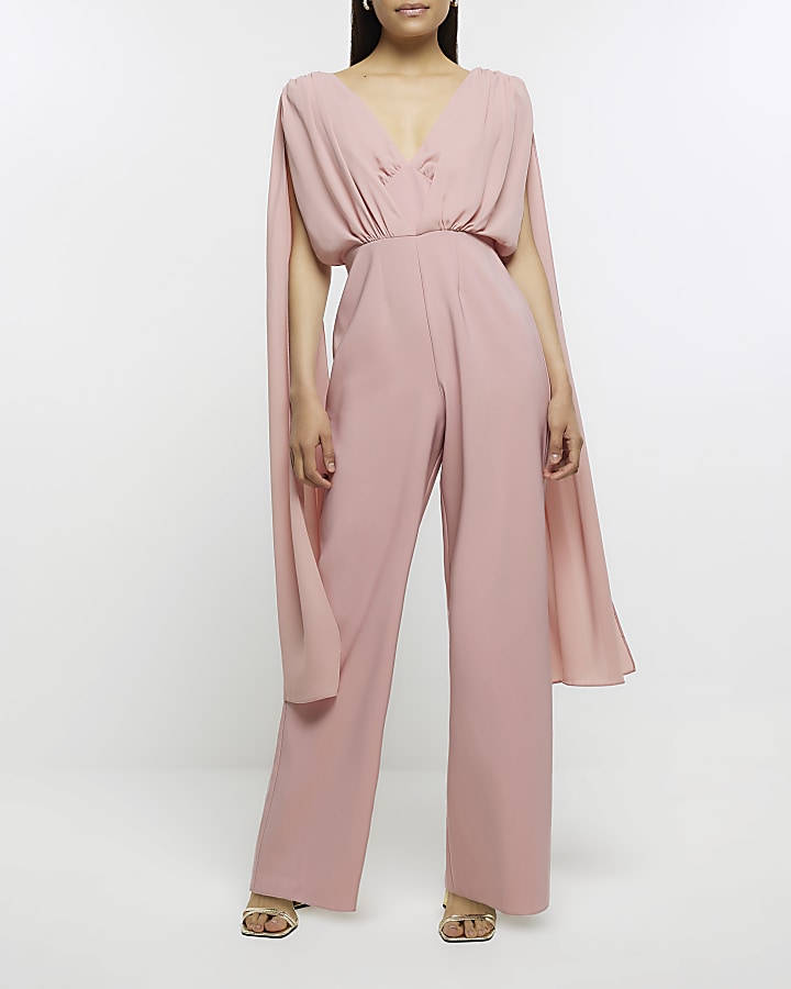 BLUSH PINK JUMPSUIT WITH SATIN CAPE DETAIL Arelia s Dream Very well made.