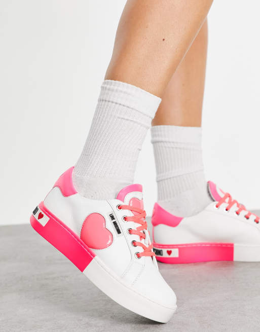 Love Moschino heart flatform sneakers in pink and white Very well made.