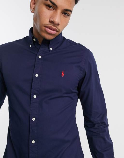 Polo Ralph Lauren slim fit shirt in navy garment dye with logo ASOS Very well made.