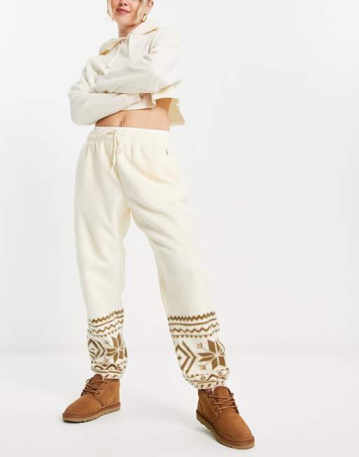 Polo Ralph Lauren printed athletic drawstring pants in cream part of a set Very well made.