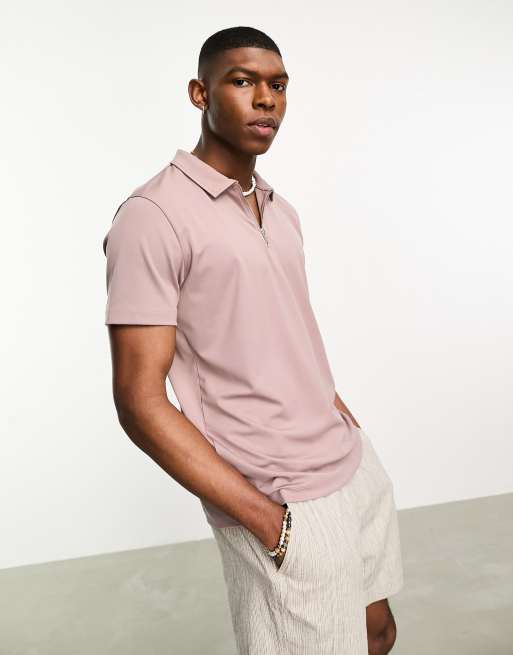 ASOS DESIGN polo t shirt in brown scuba with zip ASOS Very well made.