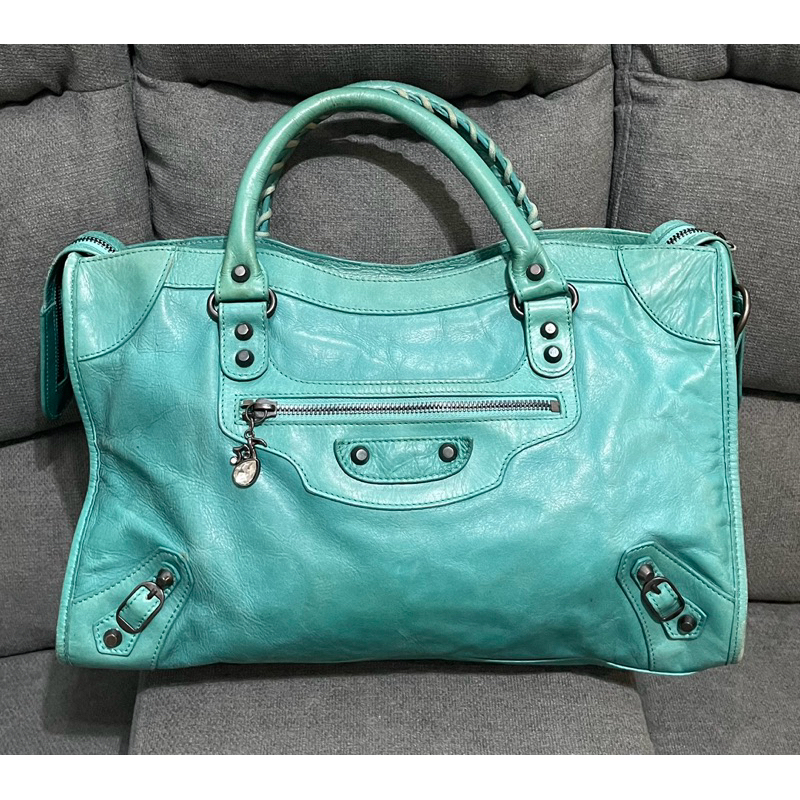Preloved Authentic Balenciaga Blue Tropical Leather Part Time Bag Very well made.