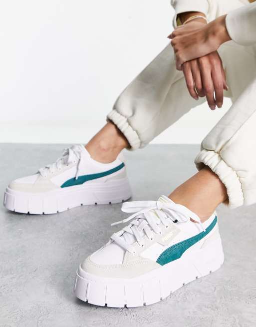 Zapatillas deportivas blancas y verde universitario con detalle de Very well made.