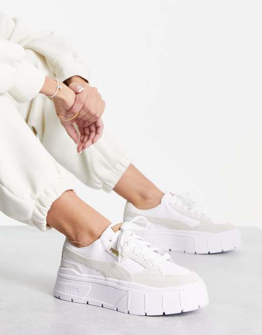PUMA Mayze Stack Sneaker in Wei mit Schn rdetail ASOS Very well made.