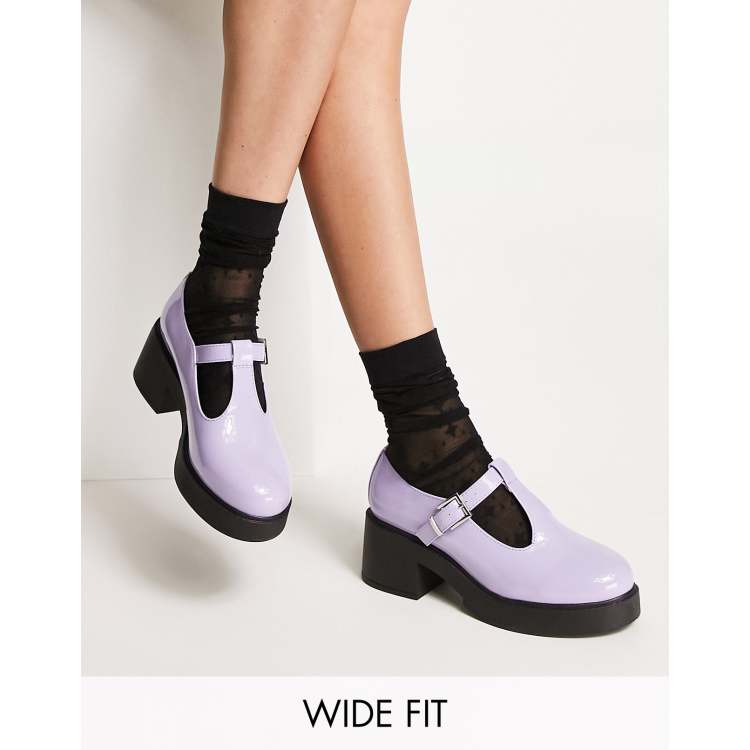 ASOS DESIGN Wide Fit Stealth mary jane chunky mid heeled shoes in lilac Very well made.