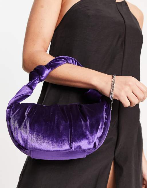 New Look faux velvet shoulder bag with knot handle in purple Very well made.