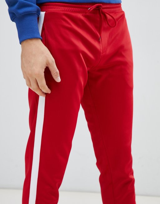Premium Side Stripe Zip Pocket Track Pants Red White Very well made.