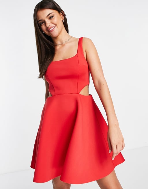 Miss Selfridge scuba corset detail cut out skater mini dress in red Very well made.