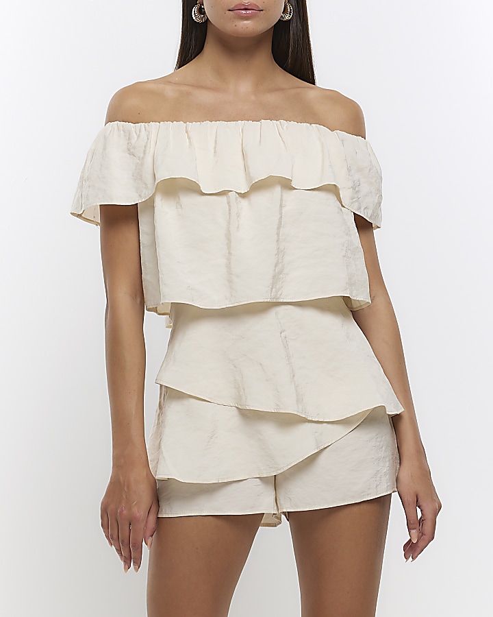 Beige bardot layered playsuit Very well made.