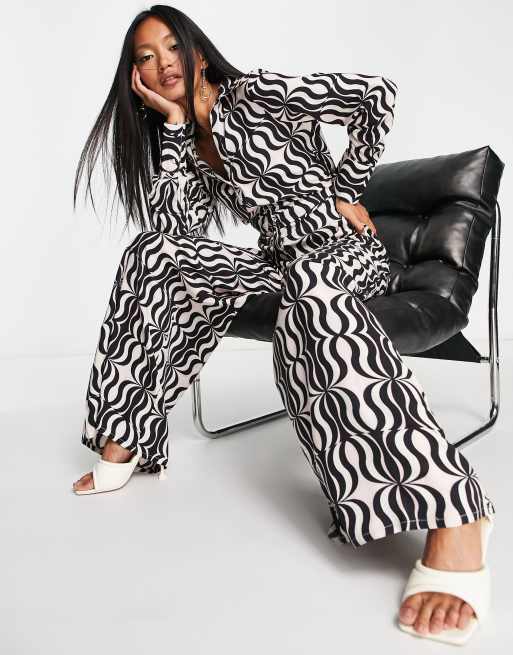 River Island Belted Printed Jumpsuit White Black very Very well made.