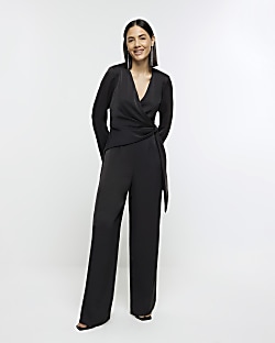 Black satin knot detail jumpsuit River Island Very well made.