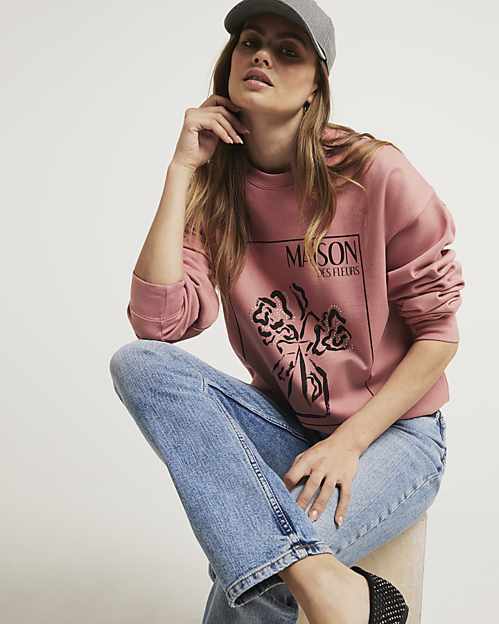 Pink floral graphic sweatshirt River Island Very well made.