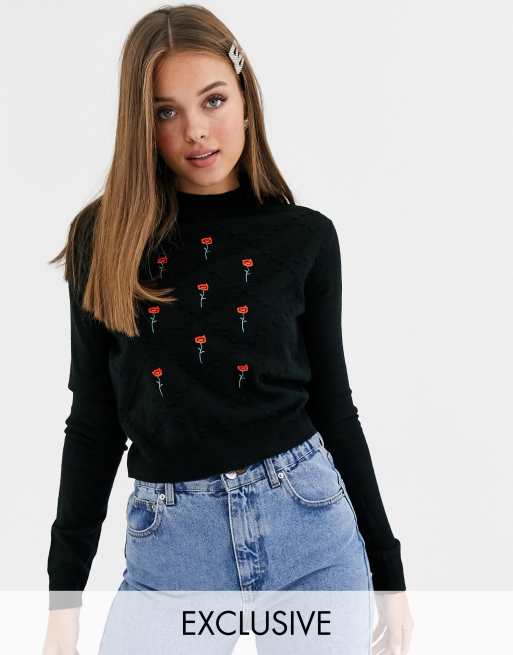 Rose Embroidery Sleeve Sweater Black NA KD Very well made.