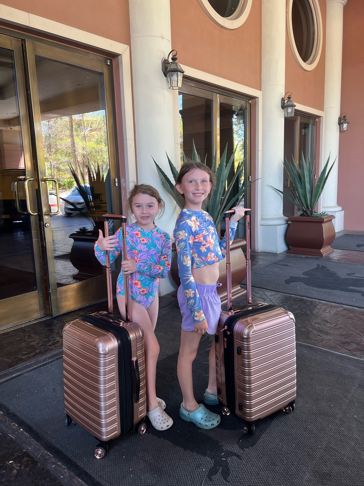 iFLY Hardside Fibertech Luggage 2 Piece Set Rose Gold Very well made.