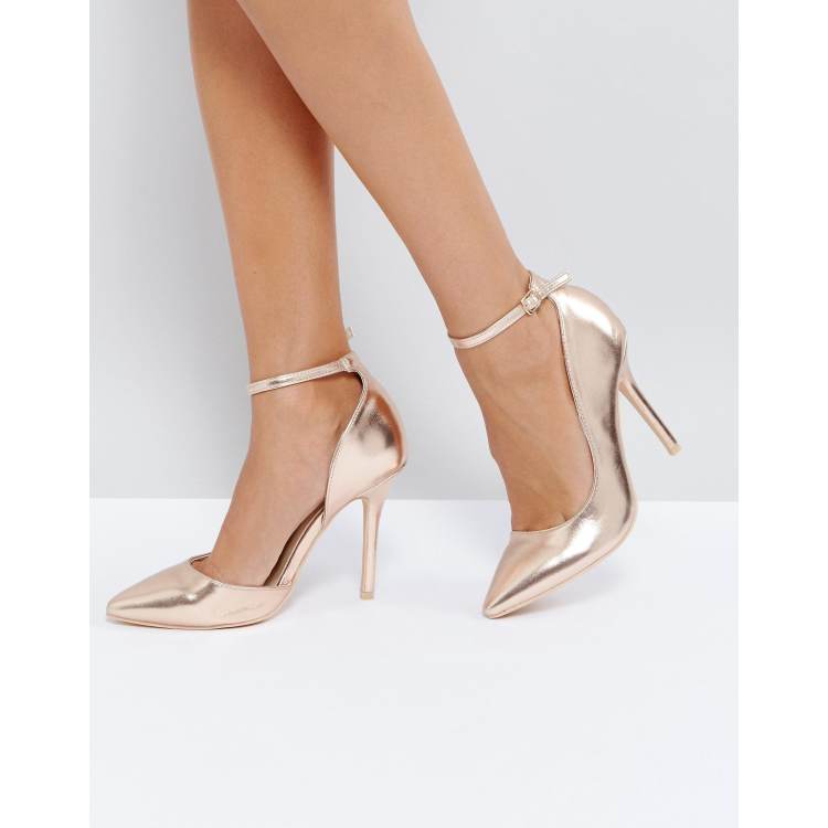 Glamorous Rose Gold Ankle Strap Court Shoes Very well made.
