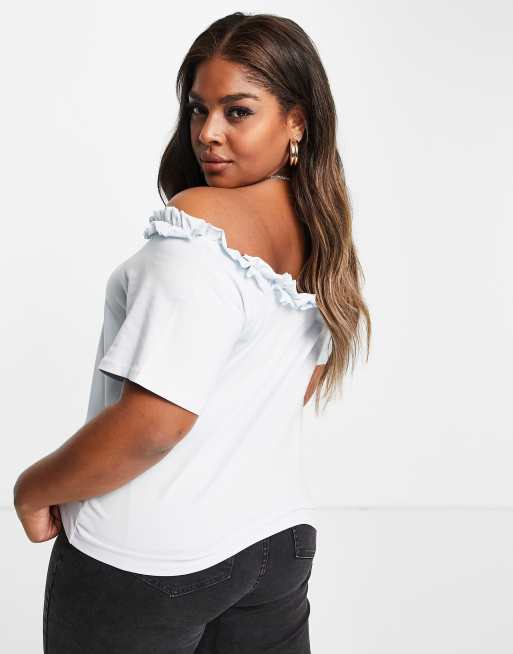 Pieces Curve ruffle edge bardot top in blue ASOS Very well made.