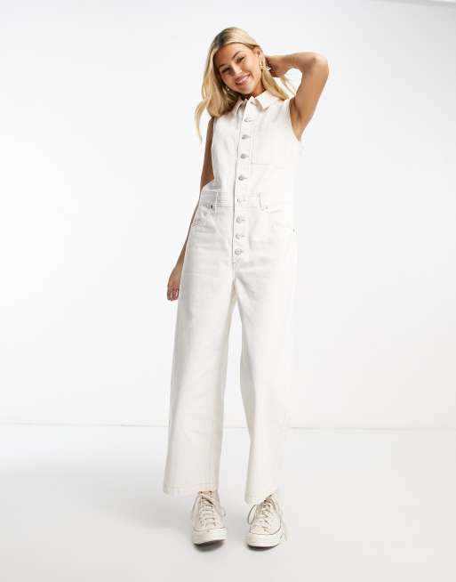 Free People button through denim jumpsuit in white Very well made.