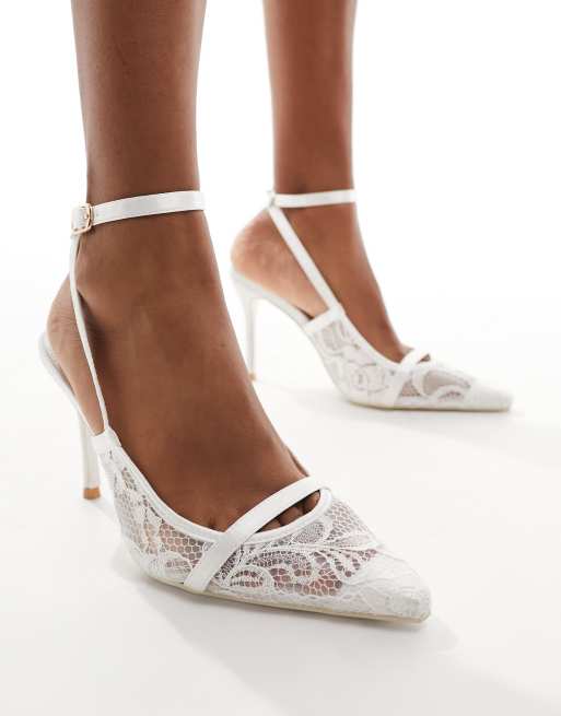 Public Desire Wide Fit Bridal Estella Scarpe con tacco a pianta larga bianche in pizzo Very well made.