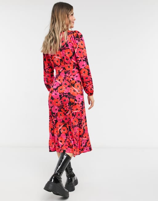 Miss Selfridge long sleeve midi dress in red floral ASOS Very well made.