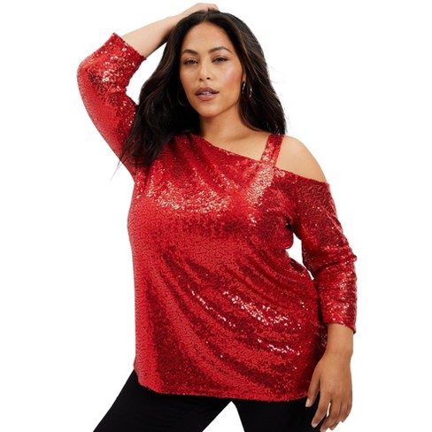 June Vie By Roaman s Women s Plus Size Sequin One shoulder Top Very well made.