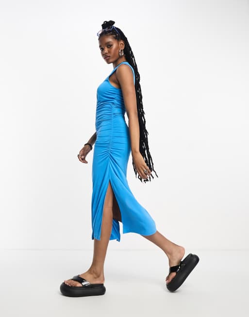 Object sleeveless jersey midi dress with ruched front in blue ASOS Very well made.