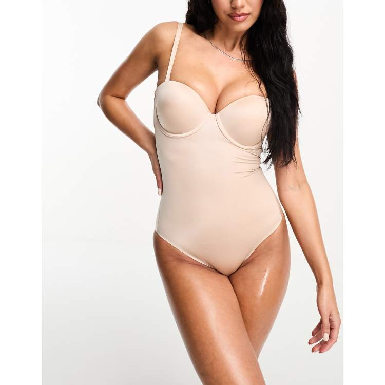 Spanx Suit Your Fancy Plunge Low Back Mid Thigh Bodysuit Beige Very well made.