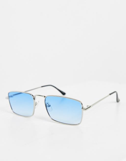 Bershka square blue lens sunglasses in silver ASOS Very well made.