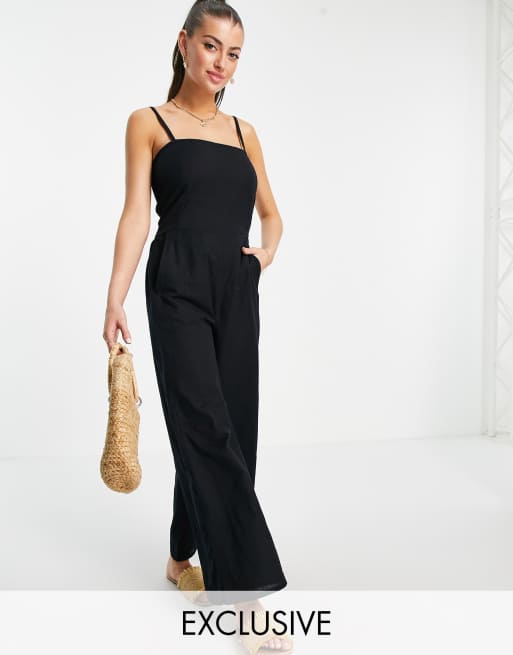 Esmee Exclusive linen square neck jumpsuit in black Very well made.