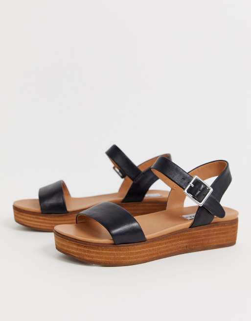 Steve Madden Aida black leather wooden flatform sandals ASOS Very well made.