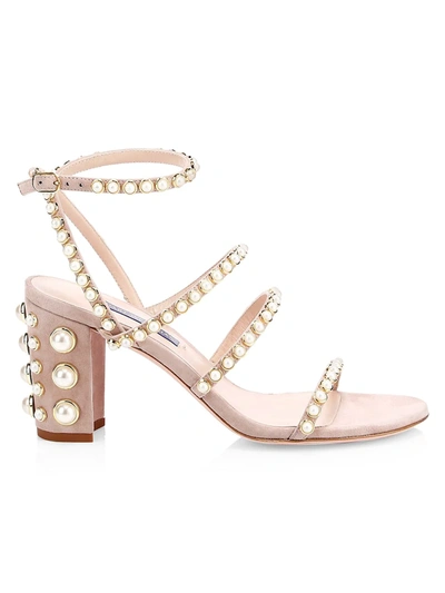 Stuart Weitzman Women s Peridot Faux Pearl Suede Sandals In Pink Very well made.