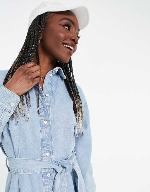 ASOS DESIGN Tall denim oversized belted shirt dress in greencast Very well made.