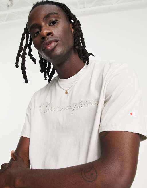 Champion Life S S CLASSIC GRAPHIC SCRIPT T SHIRT VANILLA TAN Very well made.