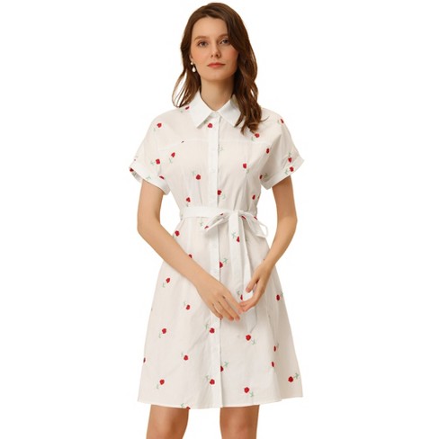 Allegra K Women s Floral Belted Short Sleeve Button up Shirt Dress Very well made.