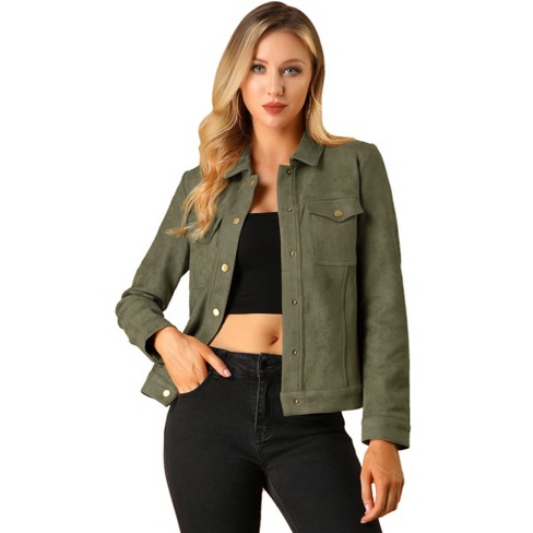 Allegra K Women s Faux Suede Cropped Stand Collar Zip Up Bomber Very well made.