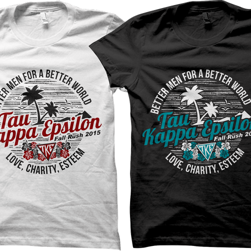 Create a hawaiian themed tau kappa epsilon rush shirt that will Very well made.