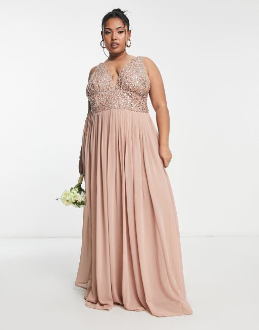 Beauut Plus Bridesmaid embellished V neck maxi dress in taupe ASOS Very well made.