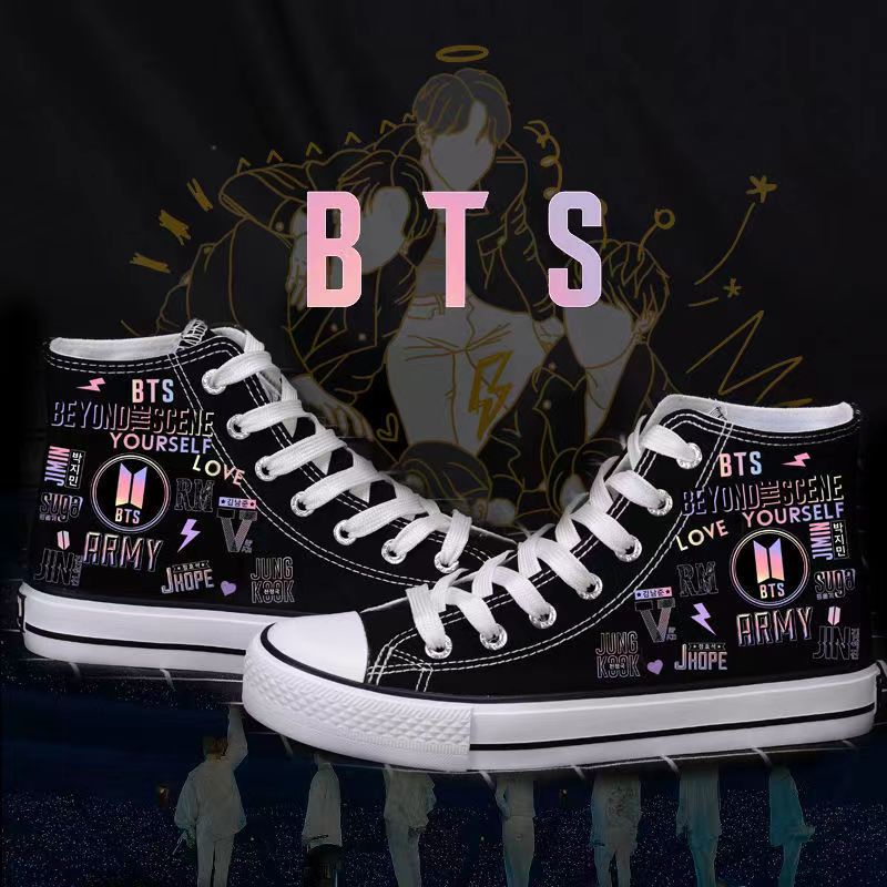 BTS Custom Hand Painted Shoes Unisex High Top Shoes Personalized Sneakers Very well made.