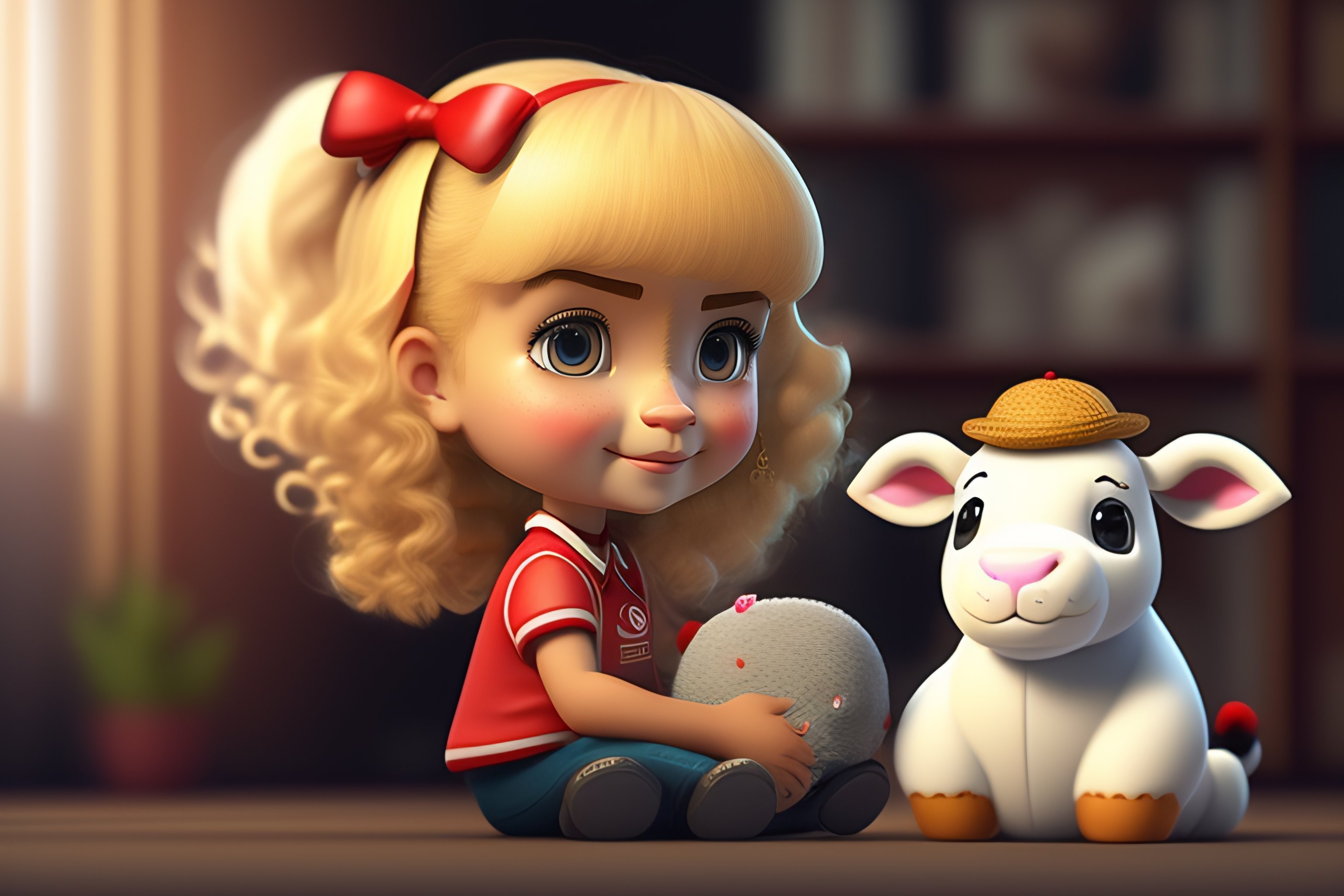 Lexica A blonde girl and stuffed cow sonrisa animated cartoon Very well made.
