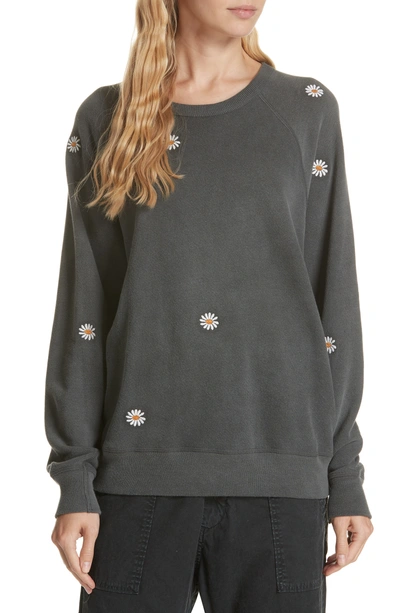 The Great The Daisy Embroidered College Sweatshirt In Washed Black Very well made.