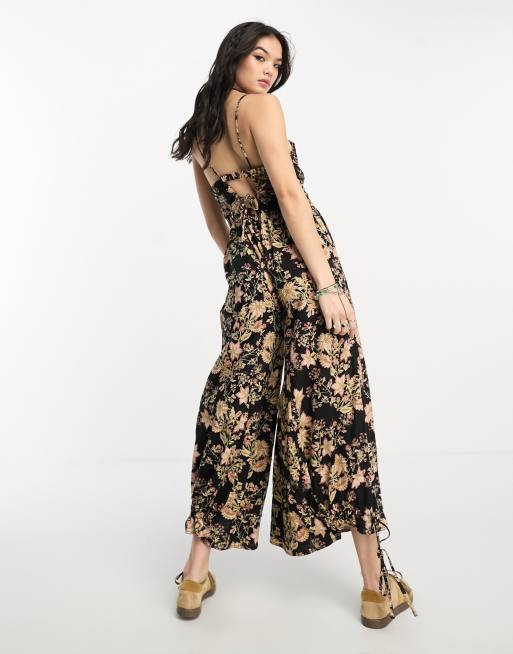 Free People floral ankle tie detail jumpsuit in black Very well made.