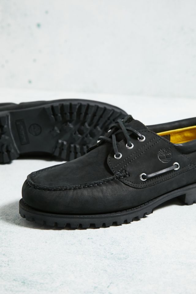 Timberland 3 Eye Classic Black Nubuck Leather Lug Boat Shoes 50529 Men Size 8 M Very well made.