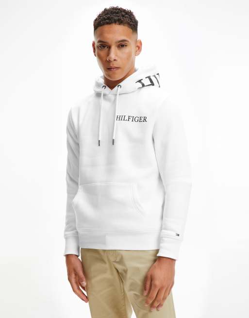 Tommy Hilfiger chest hood logo hoodie in white Very well made.