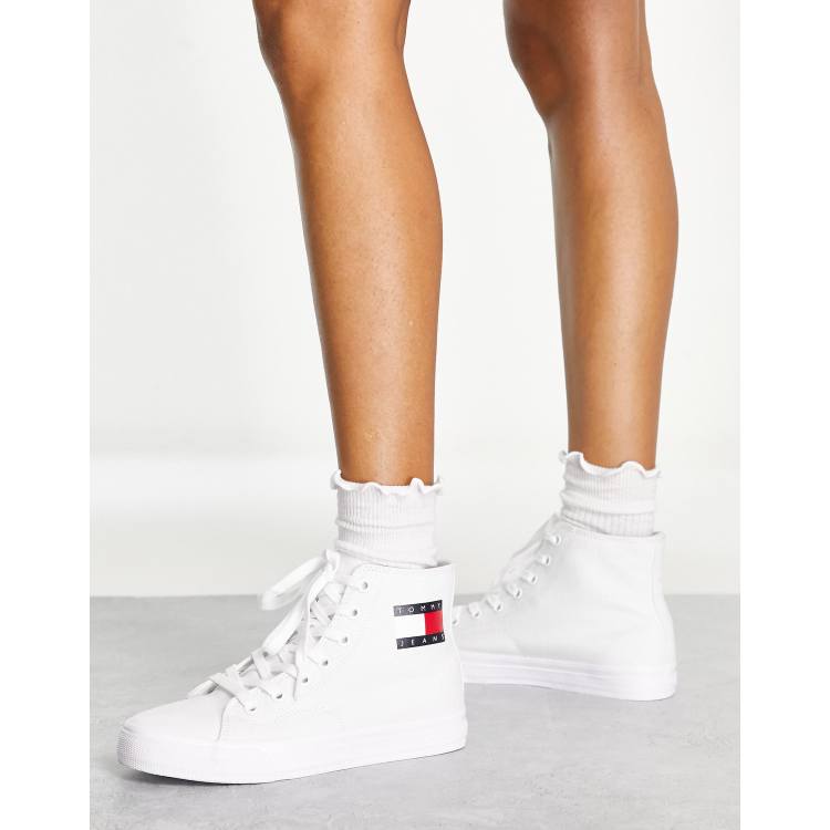 Tommy Jean flag high top lace up sneakers in white Very well made.