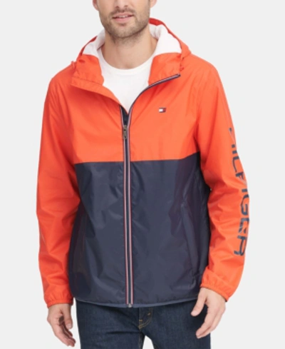 Tommy Hilfiger Men s Colorblocked Logo Rain Slicker In Orange Very well made.
