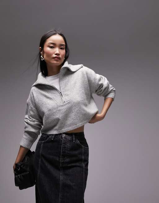 Topshop knitted crop sweater with zip up funnel ASOS Very well made.