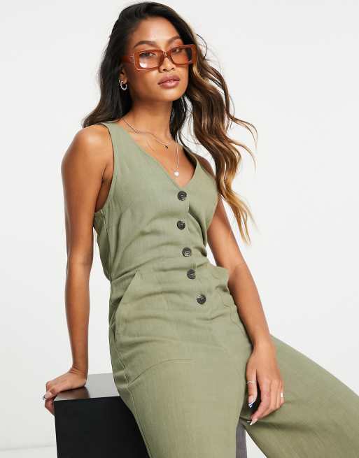 Topshop button down playsuit in khaki ASOS Very well made.